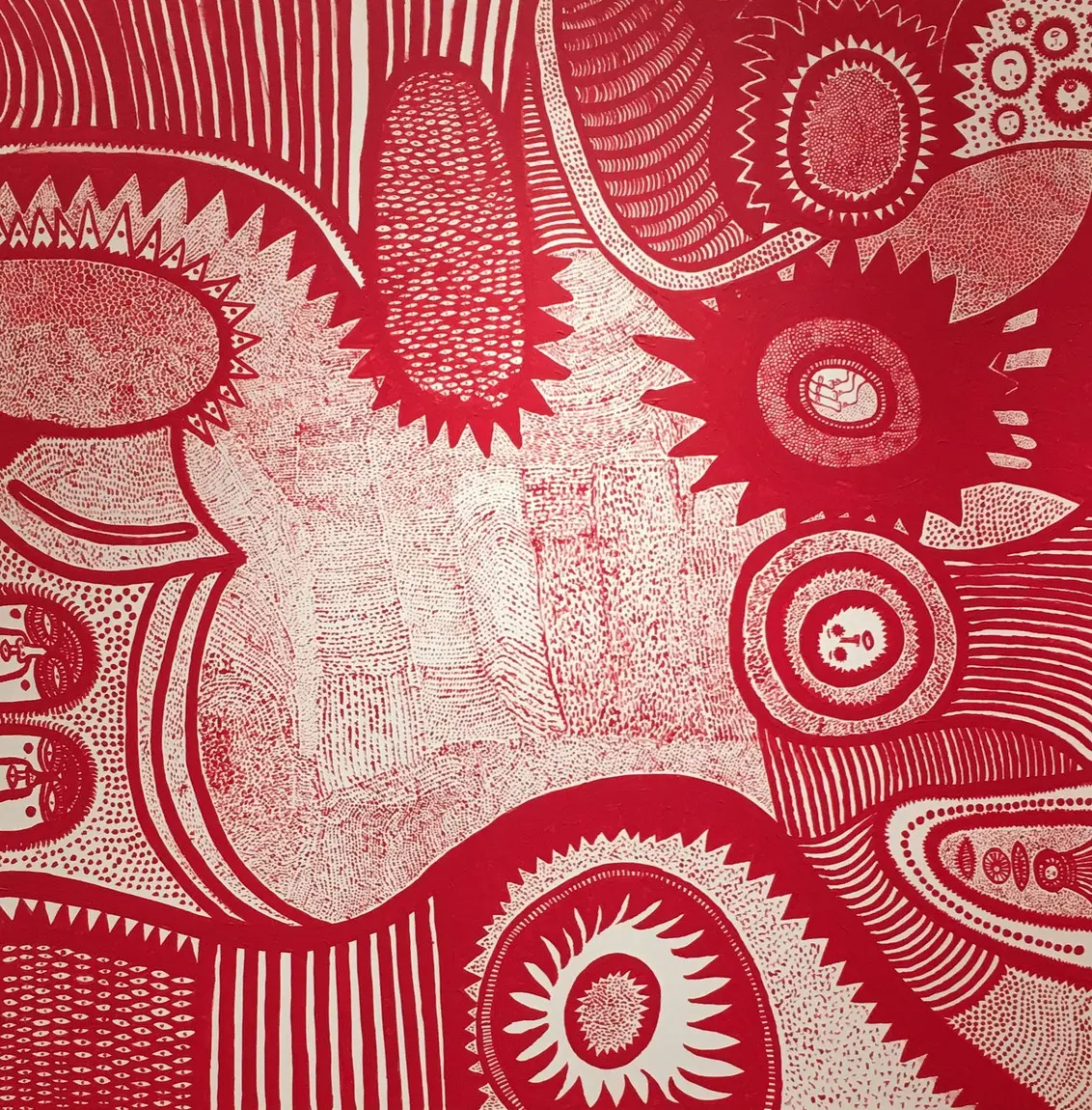 看过草间弥生的作品,直观的感受是如此疯狂的色调居然还能营造出如此般的平静。她的作品充满了撕裂的疼痛感,感觉这就是一种近乎忘我并且无法抽离的状态。但同时她又有一种安静下来的力量,就像看似平静的海面下有着汹涌的暗流涌动。