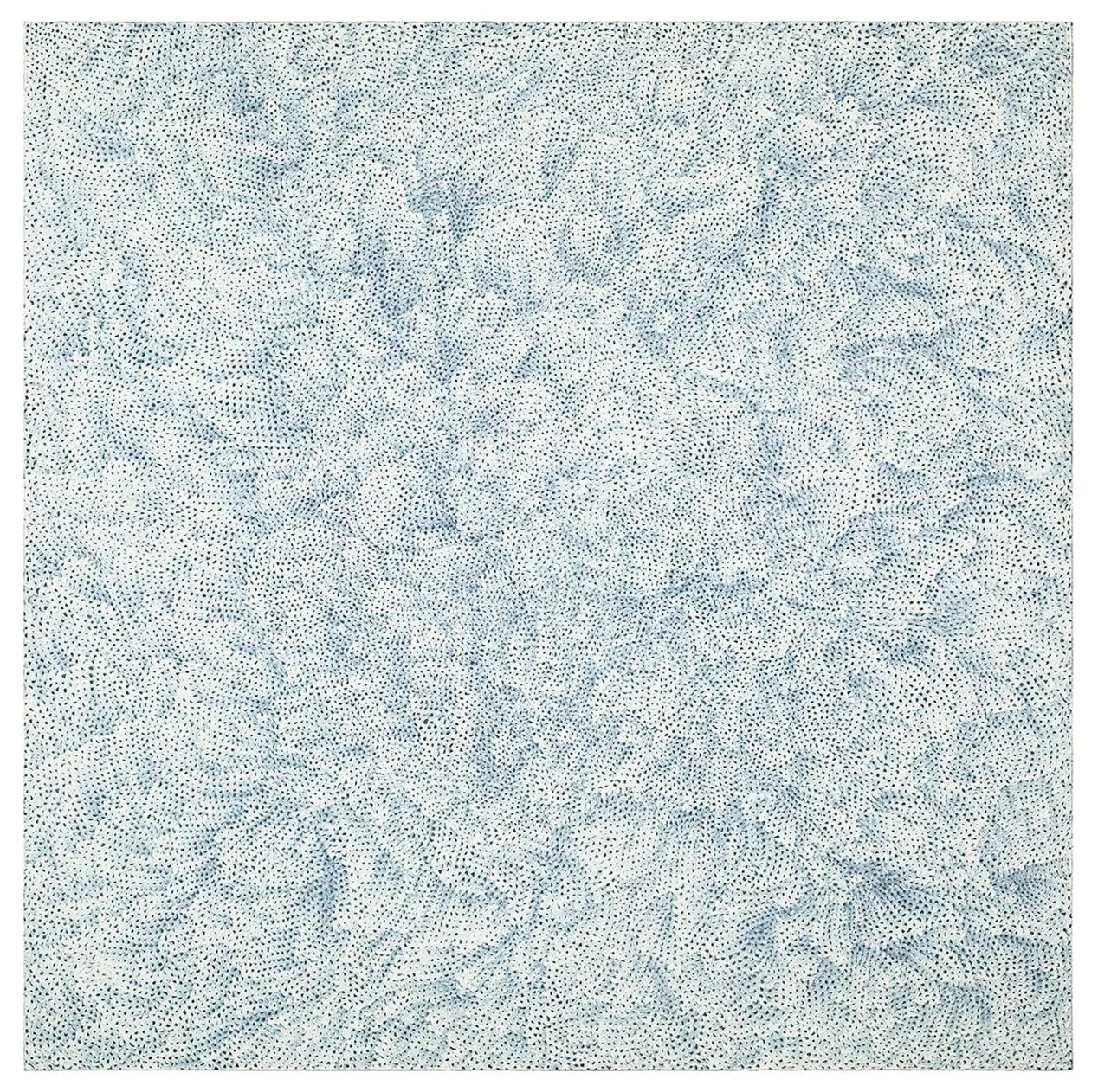 她带着这幅画去看参展,数次被拒绝,几经曲折之后。在1959年,这幅著名的《无限的网》在纽约布拉塔画廊展出,并引起巨大的轰动。