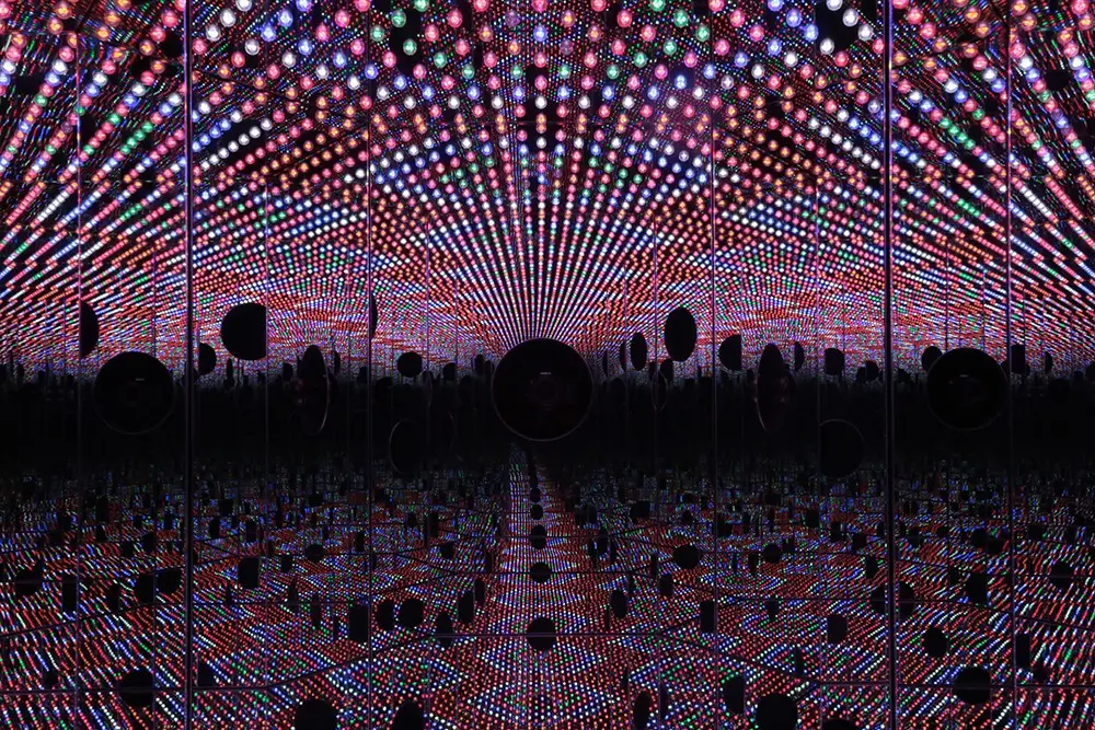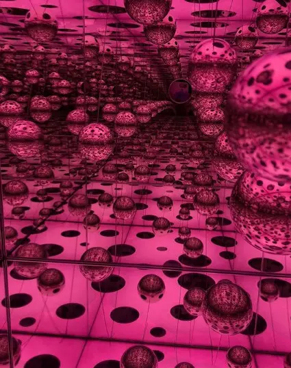 《无限镜屋》是草间弥生1965年发布的装置产品,也是她第一次以镜子为媒介进行的创作。