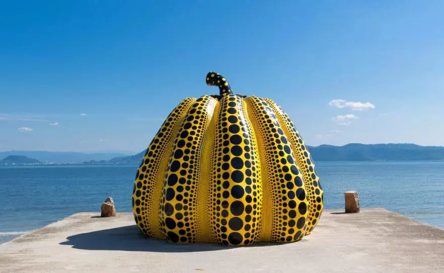 南瓜是草间弥生极为重要的创作符号,她觉得南瓜能带给她强大的精神安定感,从日本的香川县自岛、秋天市,都可以看到立体南瓜作品。
