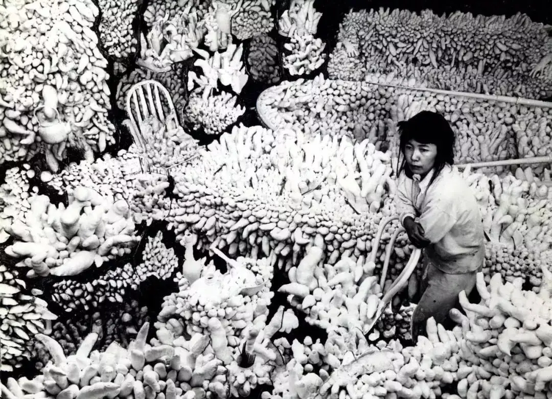 1962年,她与包括Andy warhol的另外七位艺术家联展,展出自己的软雕塑作品《阳具》,这一次顿时让草间弥生声名大噪。