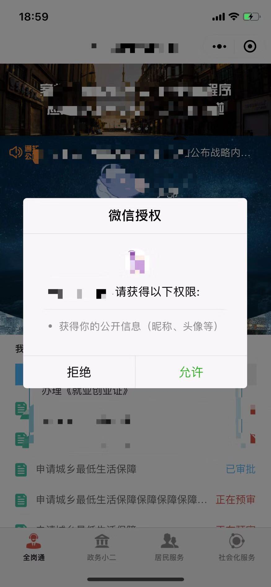 当用户进入小程序之后, 需要在获取到头像昵称等相关信息授权之后才允许他进行其它交互操作;