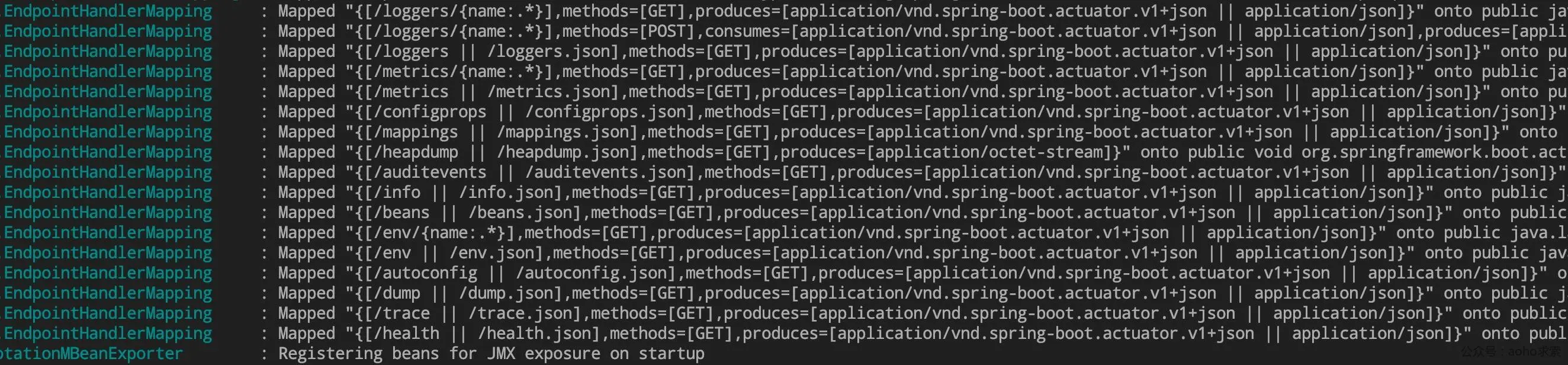 当引入的Actuator的版本为1.x时,启动应用服务,可以控制台输出如下的端点信息: