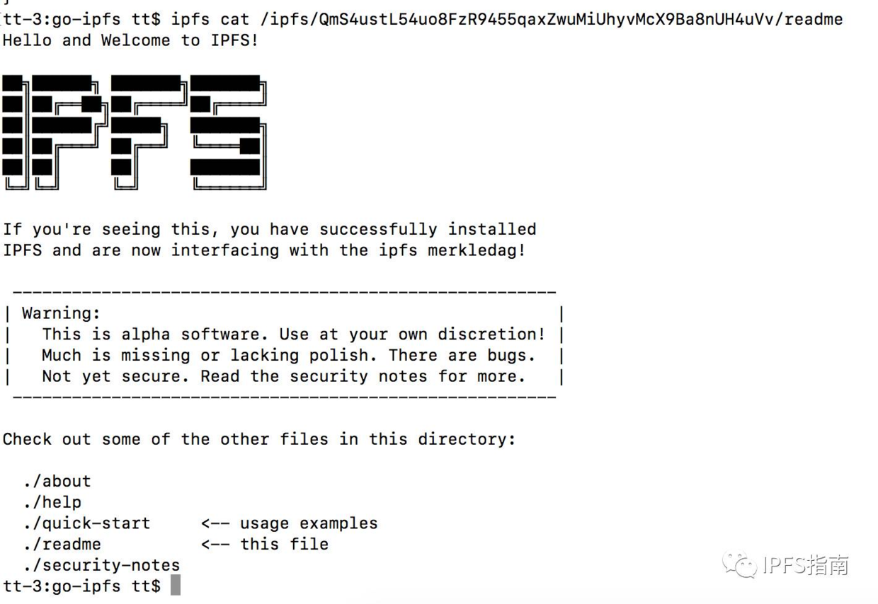 ipfs cat /ipfs/QmYwAPJzv5CZsnA625s3Xf2nemtYgPpHdWEz79ojWnPbdG/quick-start