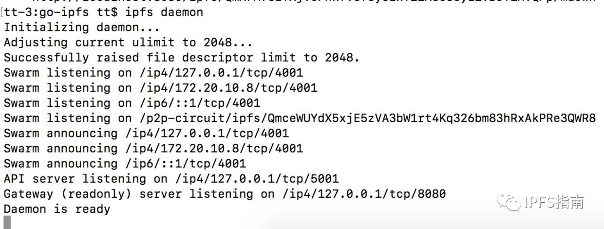 如果得到上面信息的话,恭喜你ipfs安装成功了。