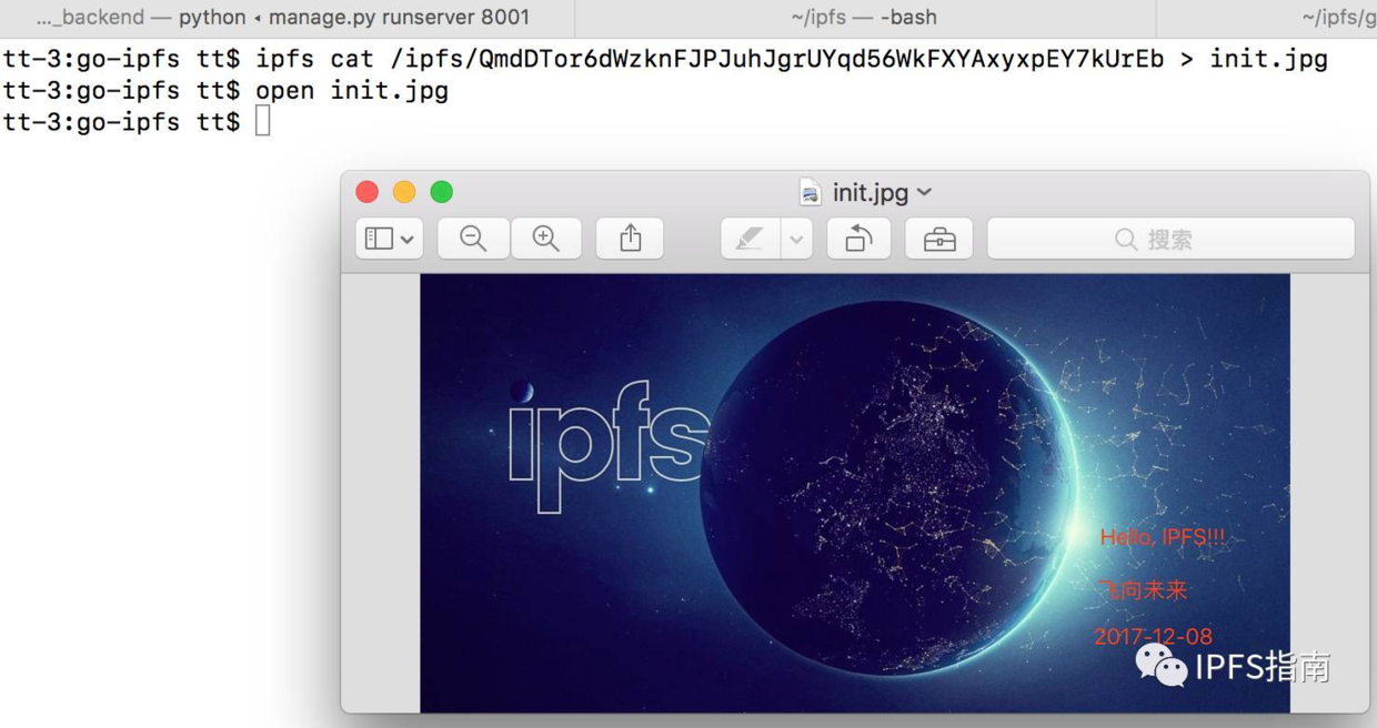 ipfs cat /ipfs/your_hash > init.jpg ipfs cat /ipfs/your_hash