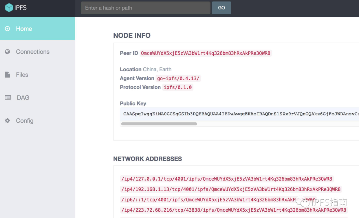 打开浏览器,在浏览器里面输入 http://localhost:5001/webui , 就可以链接到你的节点,界面如下: