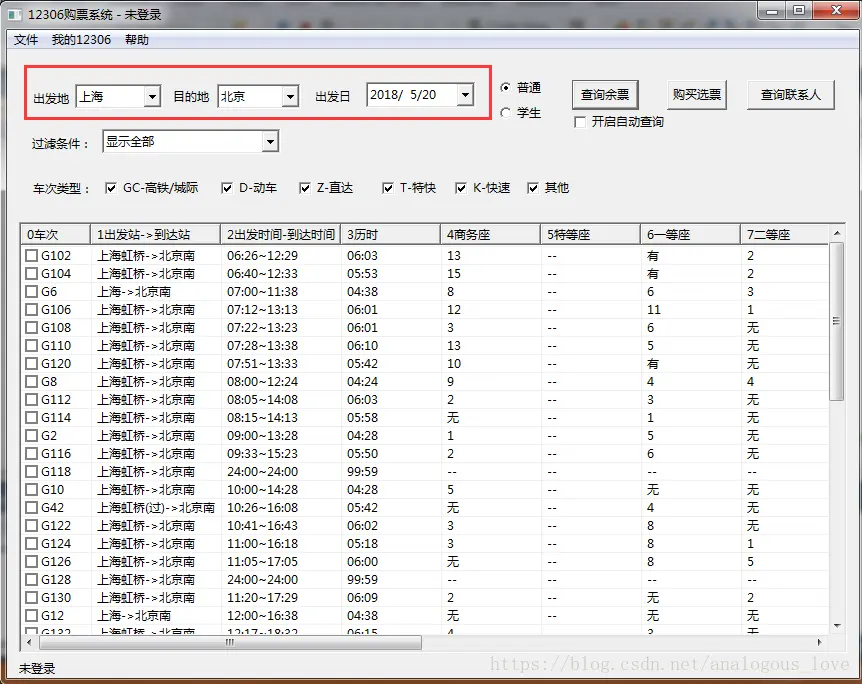 这四个参数分别是购票日期、出发站、到达站和票类型(这里是成人票(普通票)),正好对应我们界面上的查询信息: