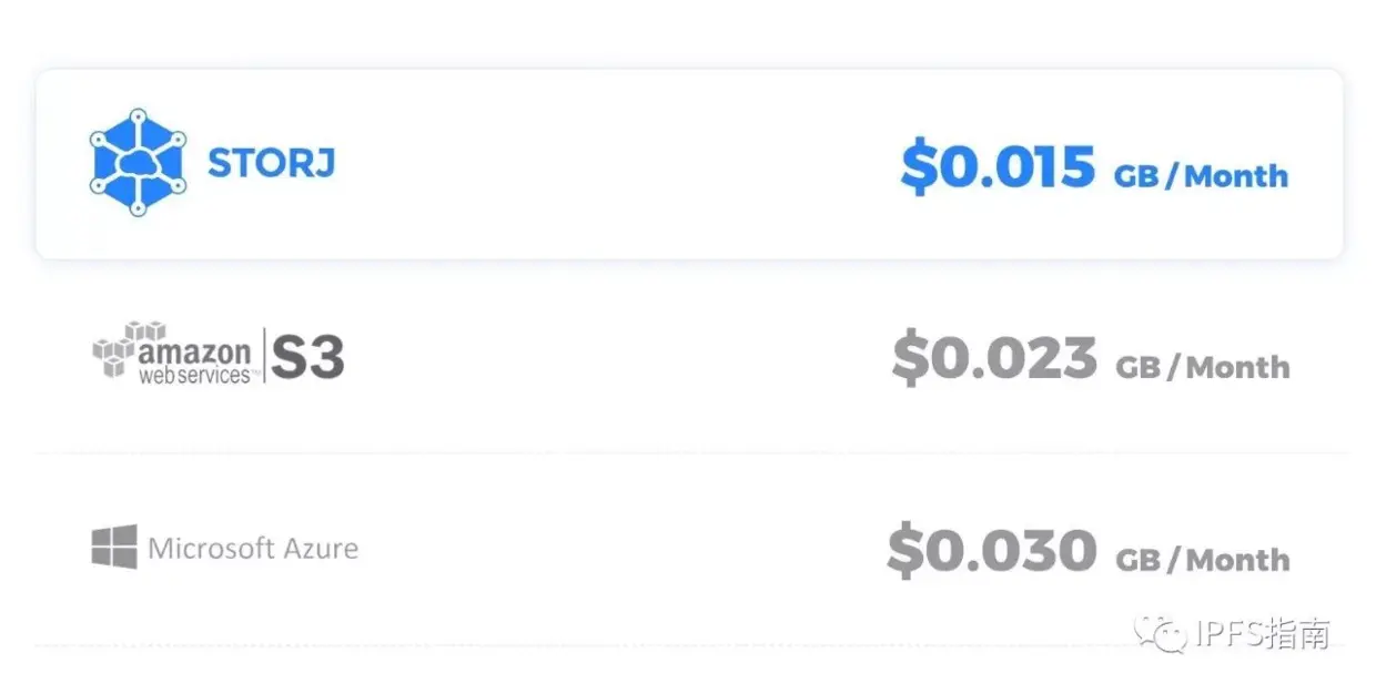 分布式存储的价格优势,Storj跟亚马逊的S3和微软Azure对比,想试试的同学不妨去申请个空间玩玩。Storj提供第一年25G的免费空间。申请地址:app.storj.io/signup。