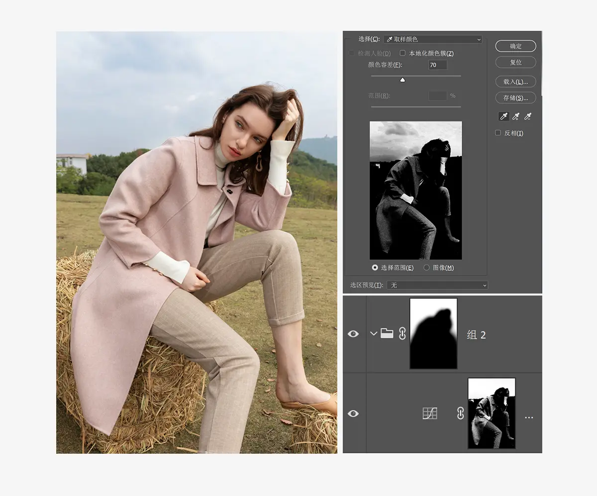 做了一个简单图片去灰之后,再来看一下图片的中间调,中间调还不够丰富。这个时候我们需要做出中间调的选区然后进行压暗让更多的中间调显现出来。