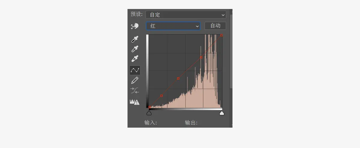 做完色彩平衡之后,发现照片中间调偏亮的位置偏红,可以创建一个曲线调整层选择红色通道对其进行调整: