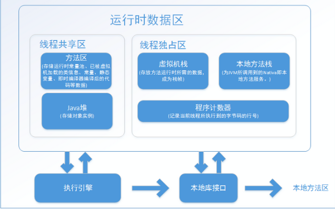 JVM分为几个区域,如下图。有的区域随着虚拟机进程的启动而存在,有的区域则依赖用户进程的启动和结束而创建和销毁。