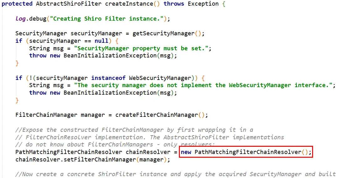 //FilterChainResolver. It doesn't matter that the instance is an anonymous inner class