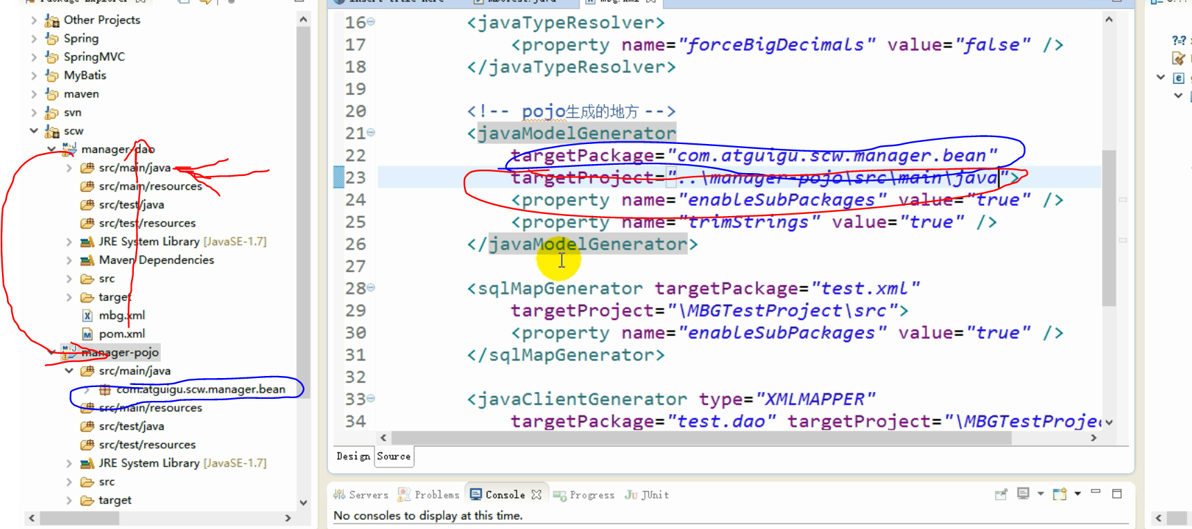 Dao逆向工程---MBG xz甲壳虫 2018-11-18 316 阅读1分钟 mbg.xml在官网复制 在配置文件中修改连接数据库信息 用power Designer生成表sql语句在数据库中生成表格 其中:配置文件的javaModelGenerator是pojo生成的地方 targetPackge是工程下bean的生成地址 targetProject是工程地址 去处注解 运行以后即可生成代码
