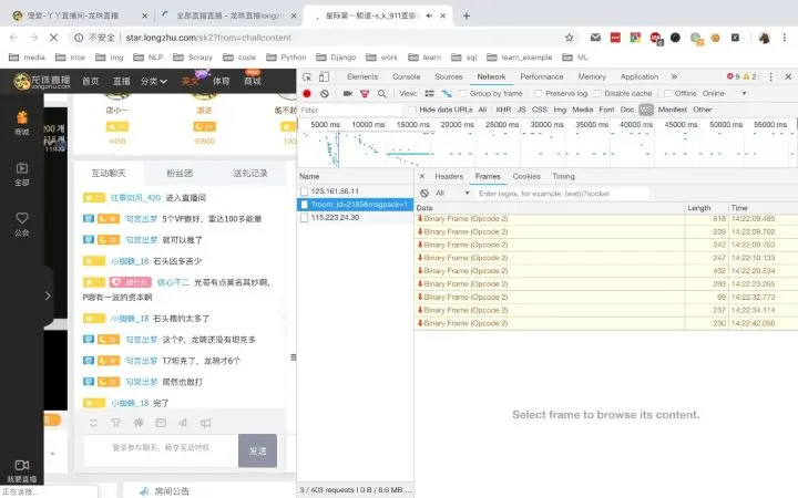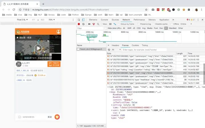龙珠直播这个有点奇怪,你根本不用去向服务器发送什么消息,服务器无脑给你推送弹幕,常见的是客户端需要先告诉服务器“我是谁”,然后服务器再推送消息给你,并且还有有心跳检测,“我”告诉服务器我还在看呢,你继续给我弹幕,看看虎牙和斗鱼。