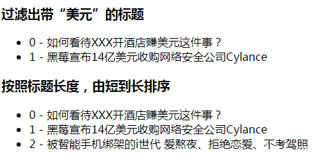 <h3>过滤出带“美元”的标题</h3>
