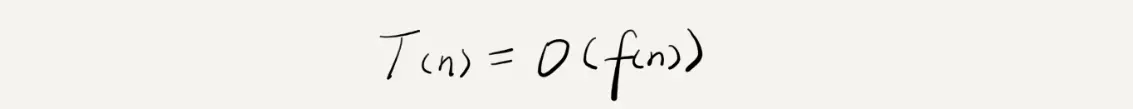 其中,T(n) 我们已经讲过了,它表示代码执行的时间;n 表示数据规模的大小;f(n) 表示每行代码执行的次数总和。因为这是一个公式,所以用 f(n) 来表示。公式中的 O,表示代码的执行时间 T(n) 与 f(n) 表达式成正比。