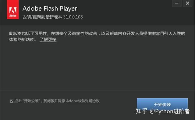 导致安装进程受阻,此时就需要安装高版本的Adobe Flash Player。从网站上下载Adobe Flash Player,然后开始进行安装,具体教程如下。