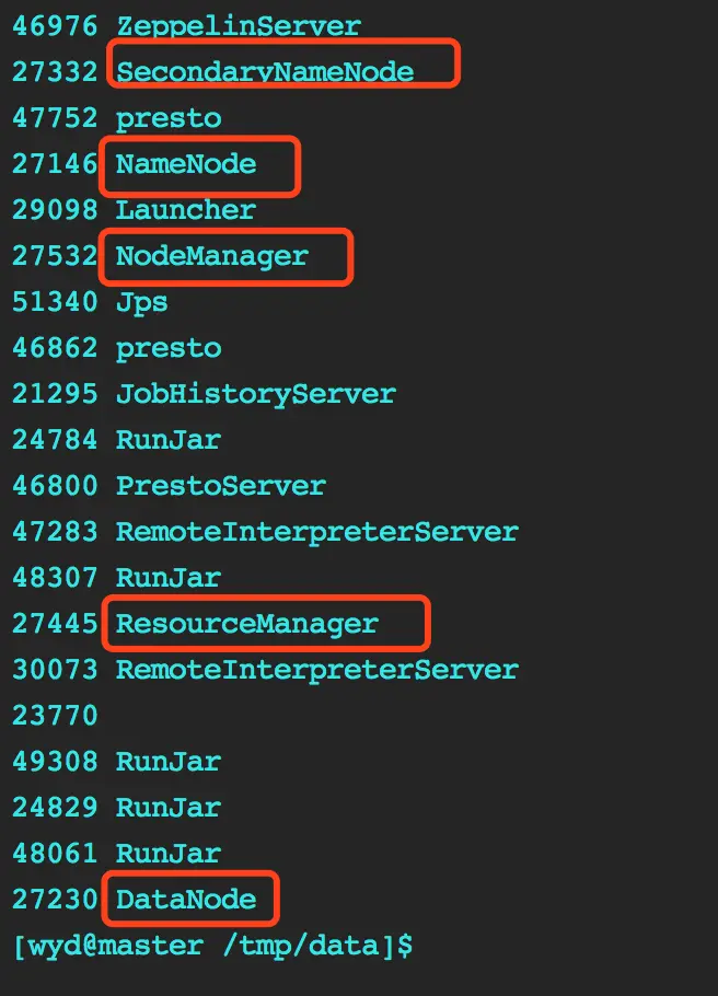 12、查看进程是否正常,是否有这几个进程 namenode、secondarynamenode、datanode、resourcemanager、nodemanager