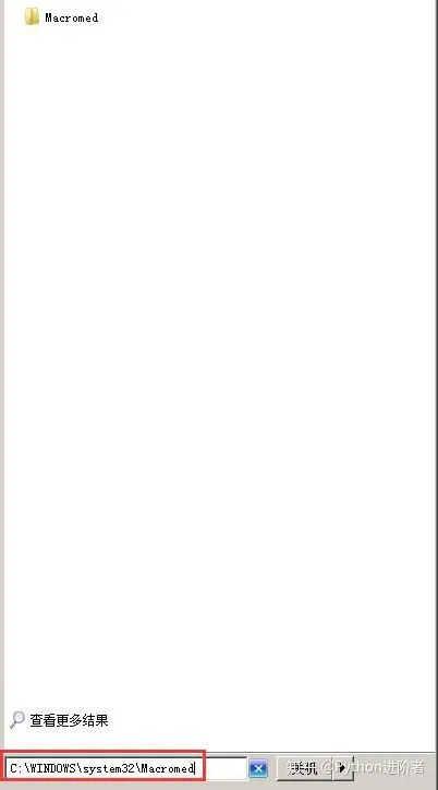 6、尔后按下Windows键(开始菜单),输入“C:\WINDOWS\system32\Macromed”,如下图所示。