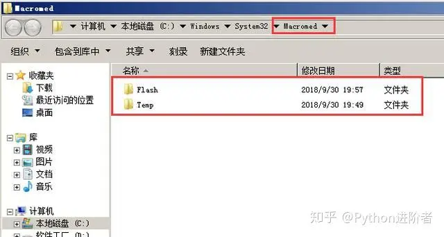 4、找到C:\WINDOWS\system32\Macromed文件夹,将整个文件夹删除。