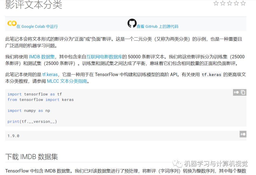 而基于文本的是采用 IMDB 的数据集,包含来自互联网电影数据库的 50000 条的影评文本。