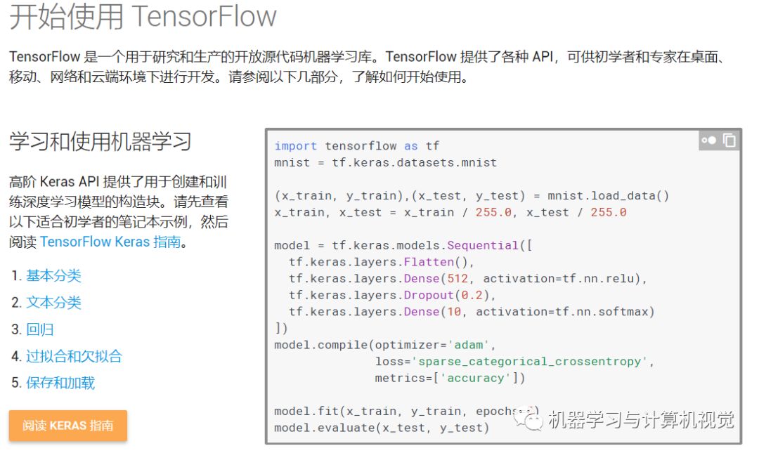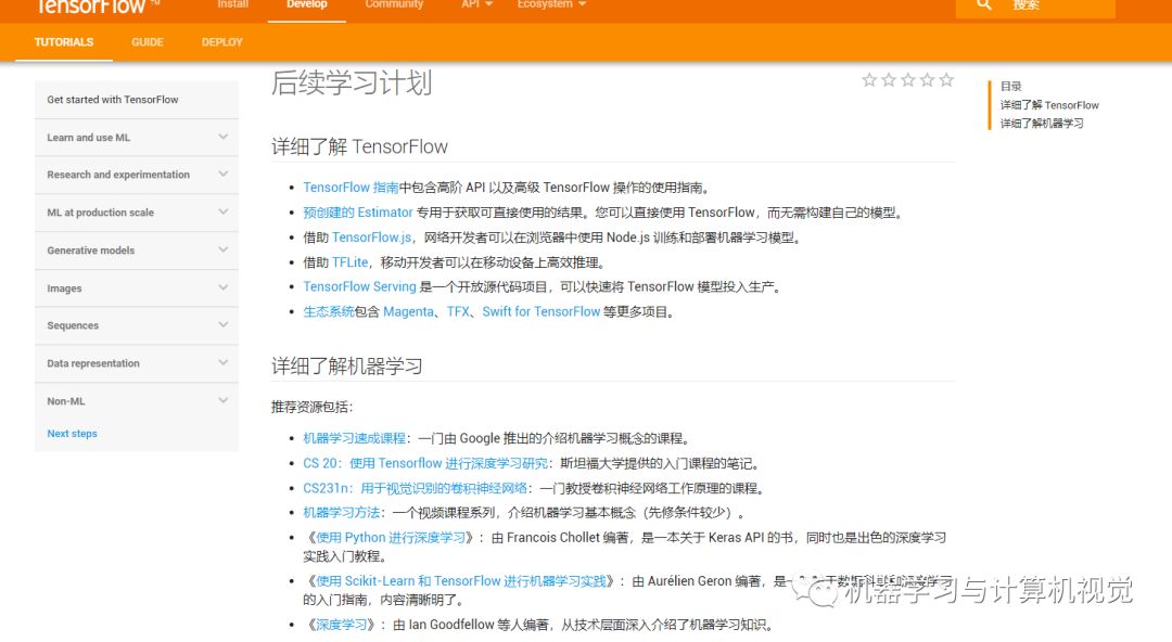 最近,TensorFlow 提供了中文版的教程(Tutorials)和指南(Guide)。