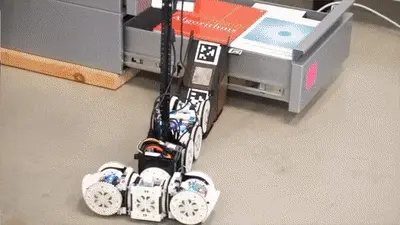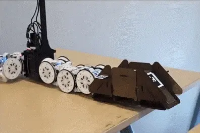 机器人果断甩掉两个模块,蛇形前进,姿态妖娆,带着强大的节奏感完成了任务。