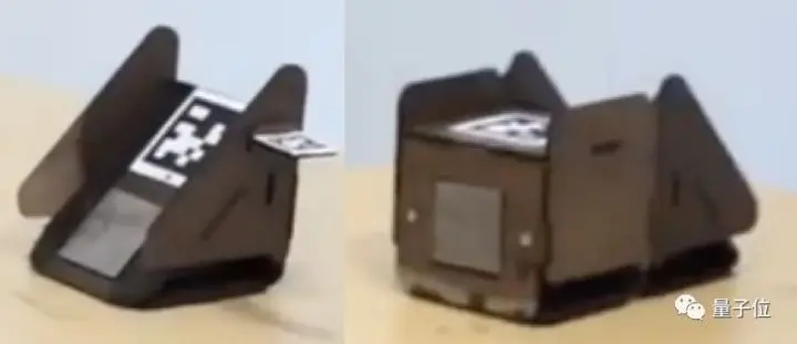 然后,把桥搭在两张桌子中间,再脱掉背面的三个模块让自己变瘦,机器人就能轻盈地到达对岸。