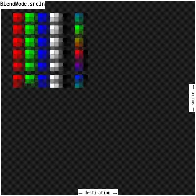 srcIn:只显示src和dst重合部分,且dst的重合部分只有不透明度有用。(这个图也不理解)