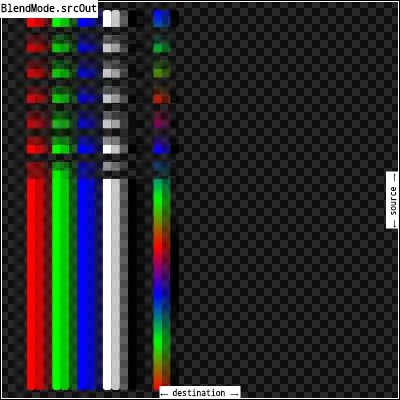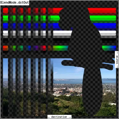 srcOut:显示src图像,但只显示src和dst的不重合部分,且重合部分只有dst是不透明的才算重合