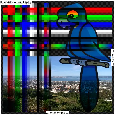 multiply:将src图像和dst图像的组件相乘,包括alpha通道。这只能导致相同或更深的颜色(乘以白色,1.0,结果没有变化;乘以黑色,得到黑色)。由于alpha通道也是相乘的,在一个图像中一个完全透明的像素(不透明度0.0)会导致输出中一个完全透明的像素。这与[dstIn]很相似,但是颜色混合了。如果src和dst都没有透明度,则可以使用[modulate]