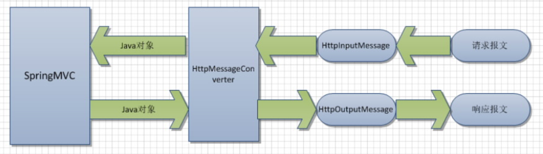 在SpringMVC中,可以使用@RequestBody和@ResponseBody两个注解,分别完成请求报文到对象和对象到响应报文的转换,底层这种灵活的消息转换机制,就是Spring3.x中新引入的HttpMessageConverter即消息转换器机制。