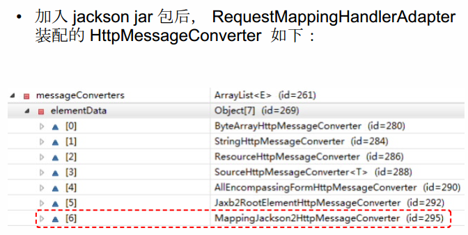 (2)加入 jackson jar包后,启动的时候加载 7个 HttpMessageConverter 的实现类,如下所示: