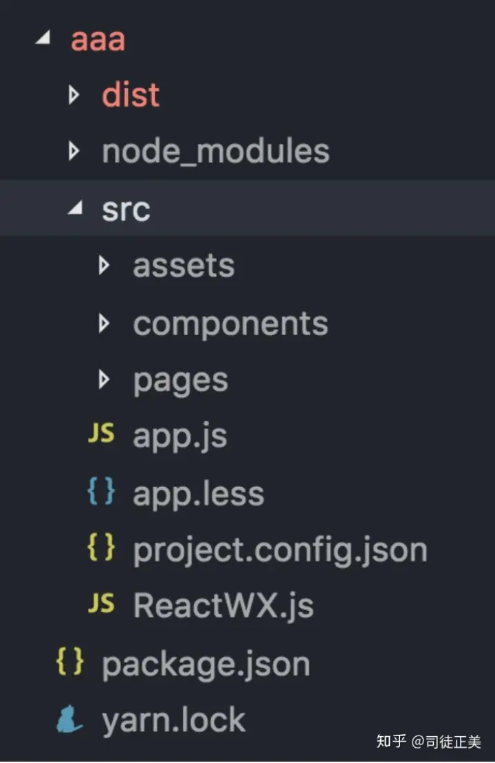 根据微信小程序的要求,src 主要分为三大块, app.js, pages目录的页面组件, components目录的通用组件。