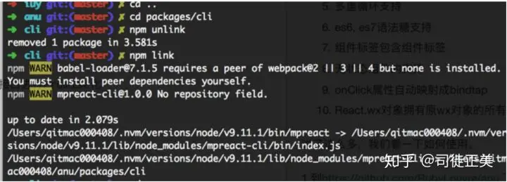 git clone https://github.com/RubyLouvre/anu.git2.进入anu/packages/cli目录, 执行npm link命令 (如果之前执行过,需要npm unlink)