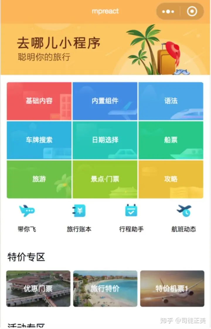 作为一个演示项目。去哪儿网模板包含一些简单的使用演示。大家可以用 vs code打 `<projectname>`。src目录是源码,dist目录是最终生成给微信运行的代码。