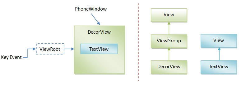 - PhoneWindow对象用来描述窗口对象,本身也是一个View