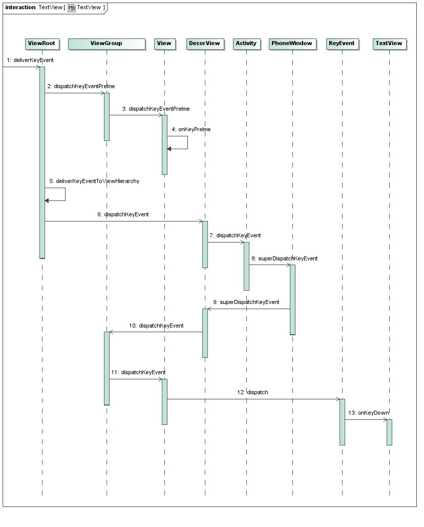ViewRoot类的成员函数deliverKeyEvent负责分发键盘输入事件,而ViewRoot类的成员函数deliverPointerEvent负责分发触摸屏输入事件