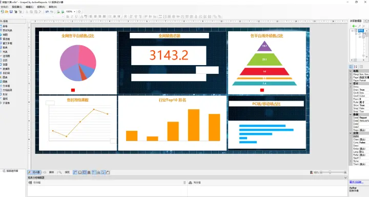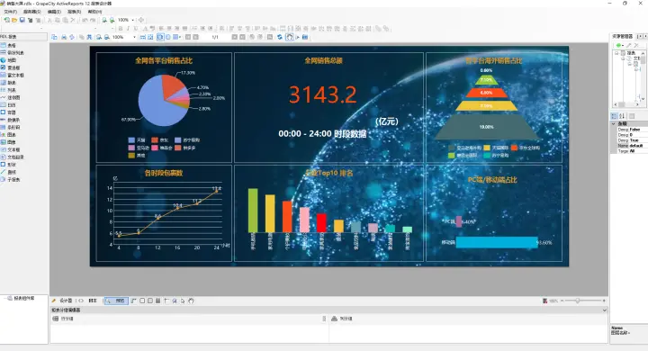 以全网双十一销售数据Dashboard为例,展示ActiveReports 如何快速完成以上各维度数据分析: