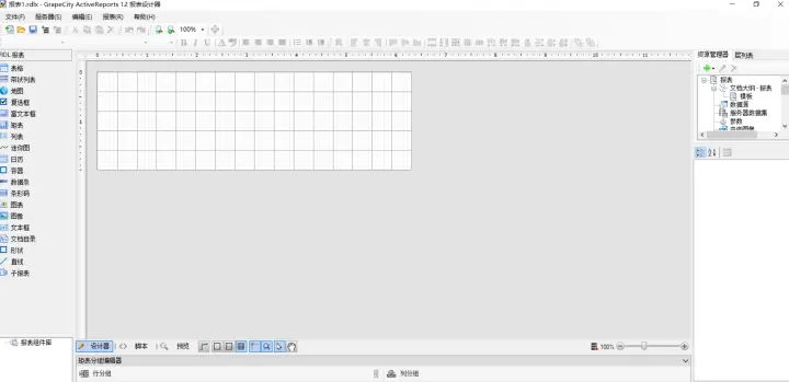 运行ActiveReports,打开桌面设计器,添加数据源,从设计器左侧直接拖出您需要分析的报表类型。