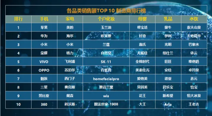基于已有的数据源,我们的Dashboard由:全网各平台销售占比、销售总额、海外销售占比、各时段包裹数、行业Top10和移动端占比六大部分组成。