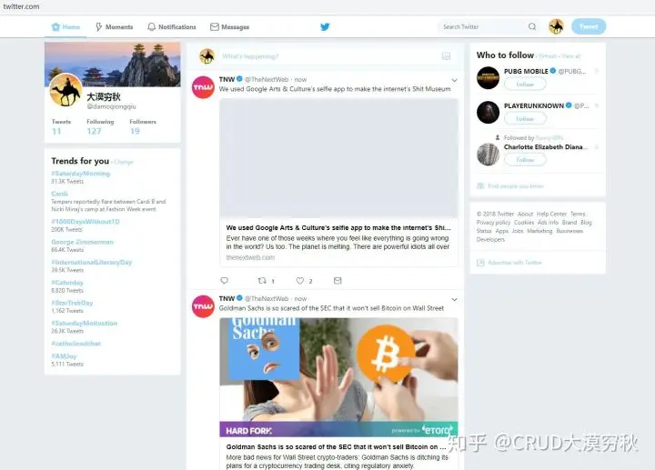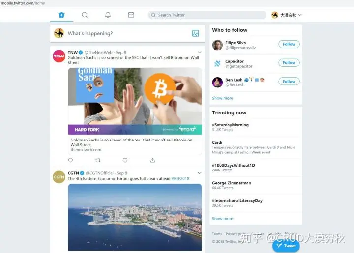 - 用最新版的Chrome浏览器打开mobile.twitter.com