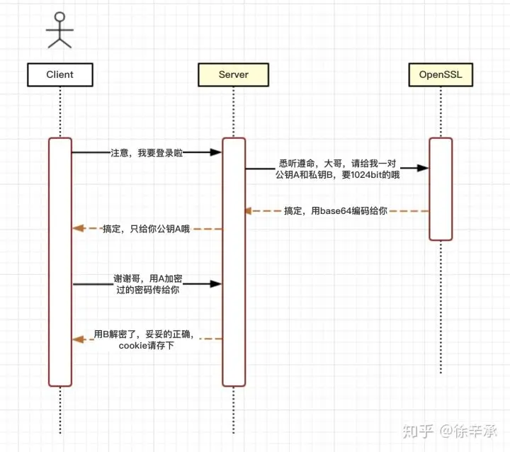response里有pubkey,意味着,密码使用RSA进行加密和解密处理的,这个请求传输的是公钥。那么流程是什么样的呢?