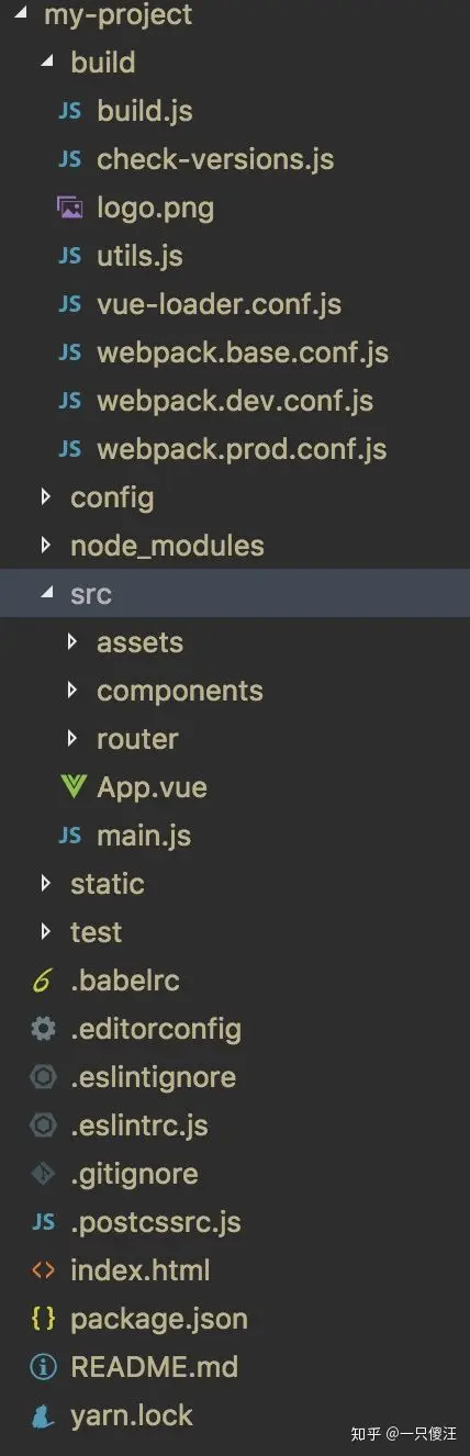 vue init webpack my-projectvue-cli 生成的vue项目,其目录结构如下: