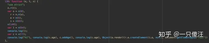 (3)npm run build之后查看dist/static/js/index.js, 格式化之后,发现'Bye'字符串再也找不到了,说明sayBye方法完全去掉了。相关代码如图:
