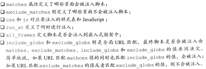 所谓操作用户正在浏览的页面,实际上就是操作页面的DOM。我们通过manifest.json文件中的content_scripts属性,可以指定将哪些js脚本何时注入到哪些页面中。当页面被访问时,Js脚本就会自动执行。
