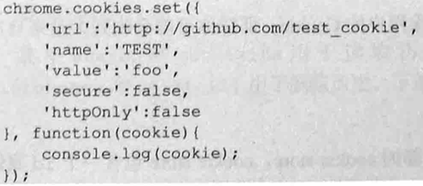 Chrome提供set方法用于设置Cookie,支持的属性包括上边Cookie属性的所有字段。