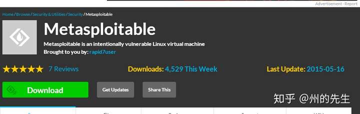 有需要的同学在sourceforge进行下载,下载链接为:https://sourceforge.net/projects/metasploitable/