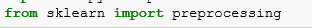 对数据进行预处理的方式有很多中,比如规范化、标准化、二值化、编码分类等等。我们可以通过sklearn模块的preprocessing子模块对数据进行预处理,其中包含了各种数据预处理的集成函数: